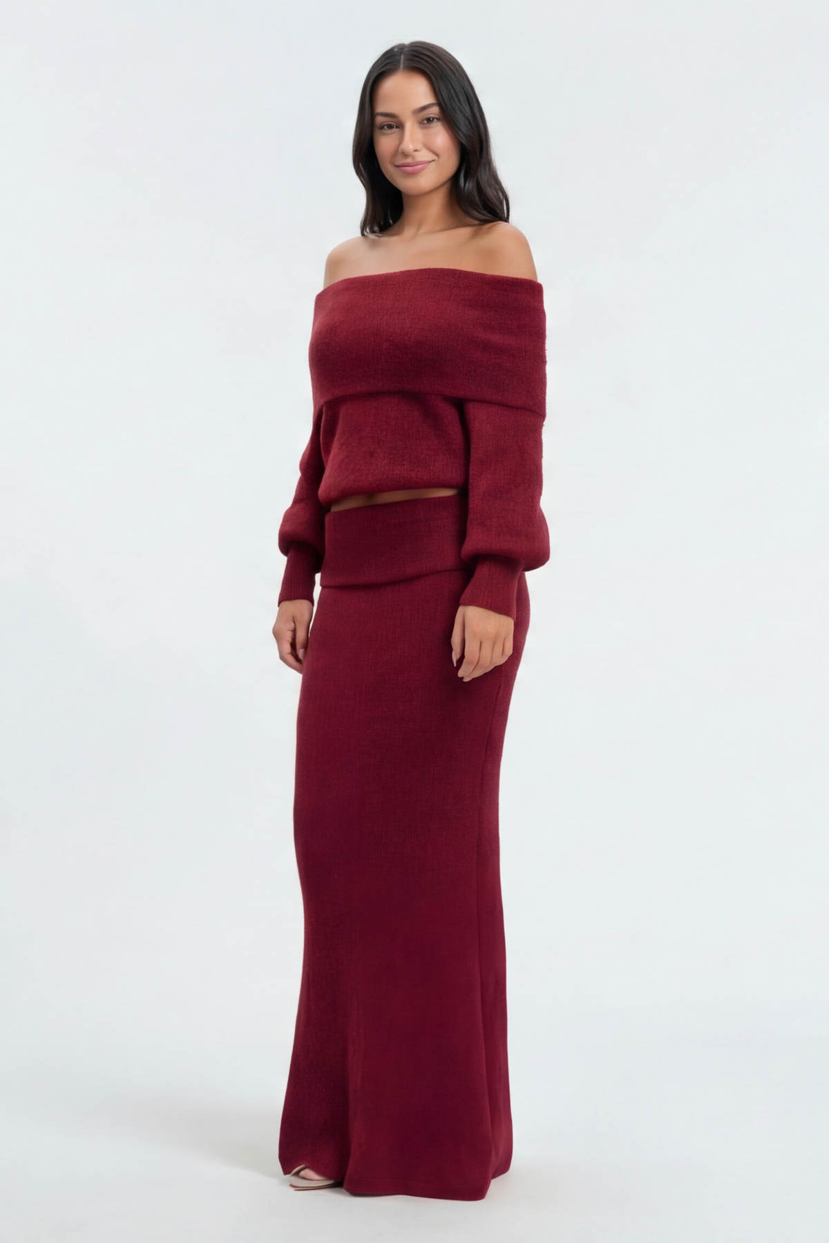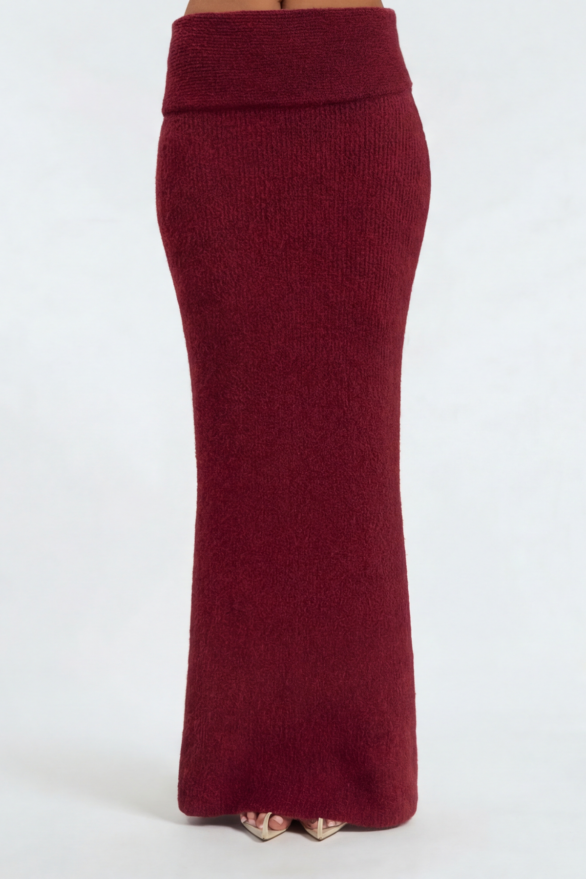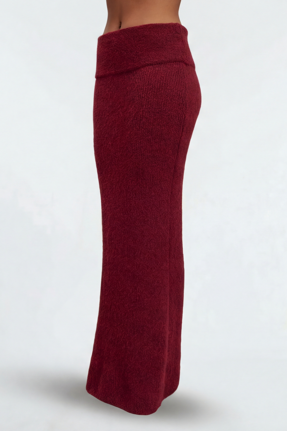 The VELONA Merlot Knit Maxi Skirt combines a refined overlay with a flattering, comfortable fit. Designed with a flowing maxi silhouette, it’s perfect for elegant occasions and everyday styling.
